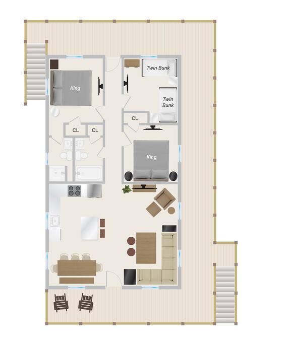 The house can accommodate up to 2 dogs with a non refundable pet fee. If you have a special request, please reach out to us. The door code is provided at the check-in time on the day of arrival. We provide linens (sheets and bath and beach towels). A booster seat and a pack ân play are also available. We provide a starter pack with the following: - toilet paper - paper towels - dishwasher tablets - laundry pods - Keurig coffee pods and tea - trash bags