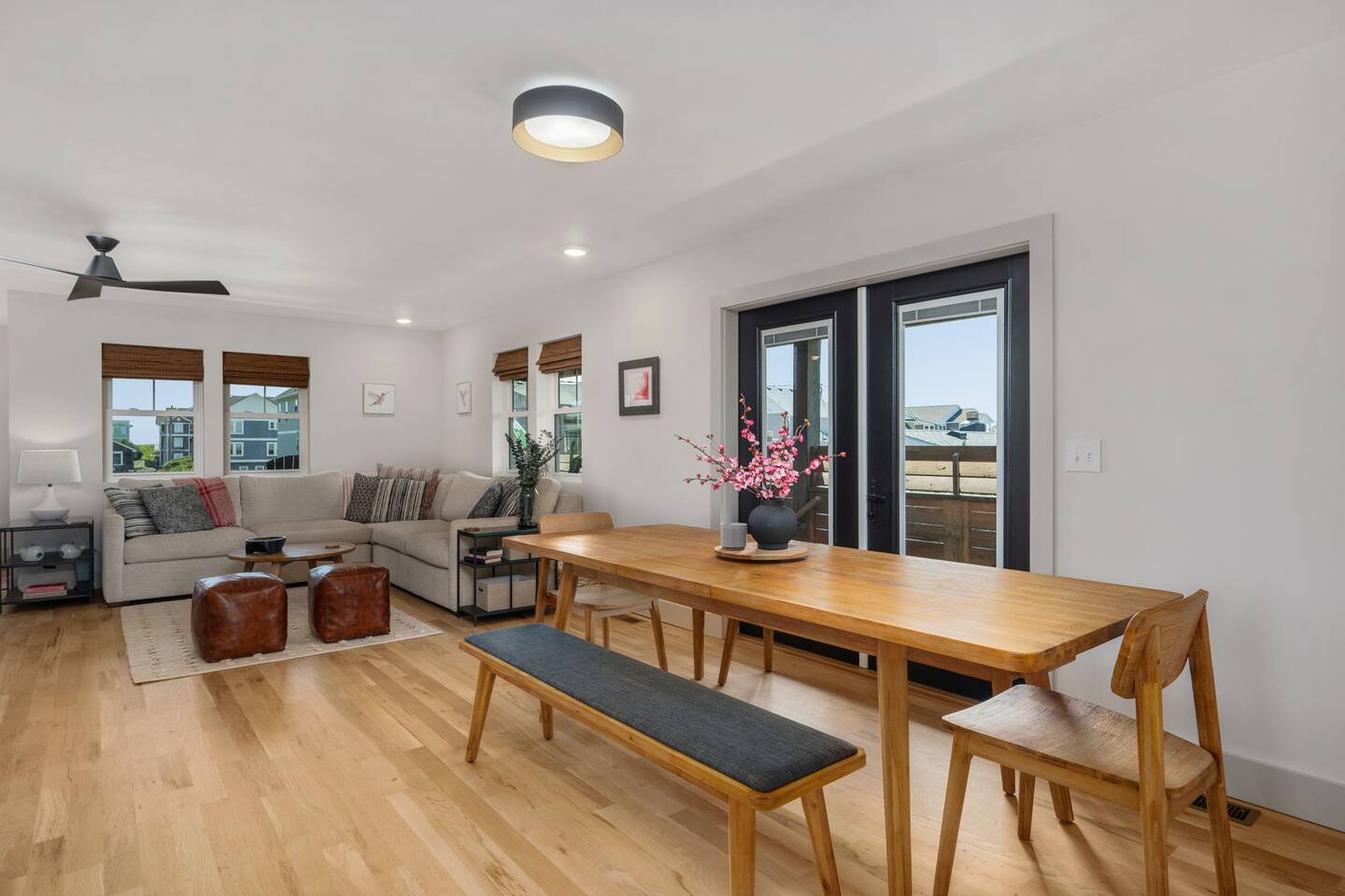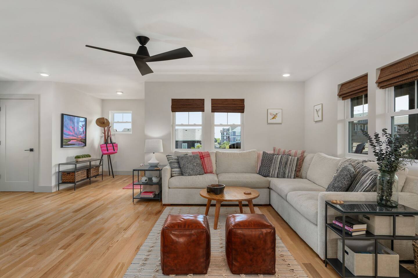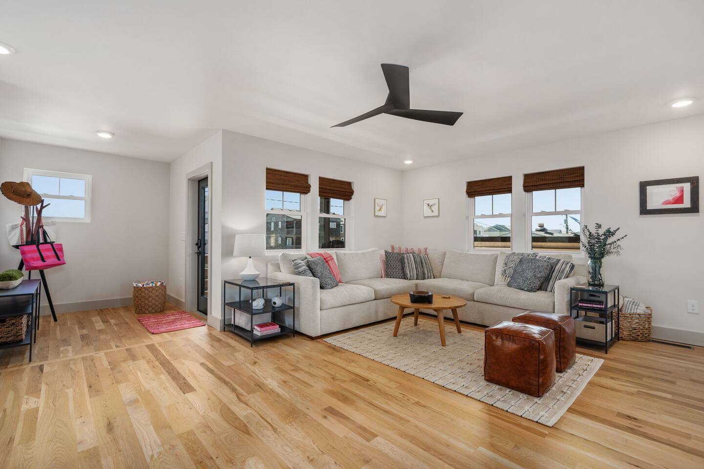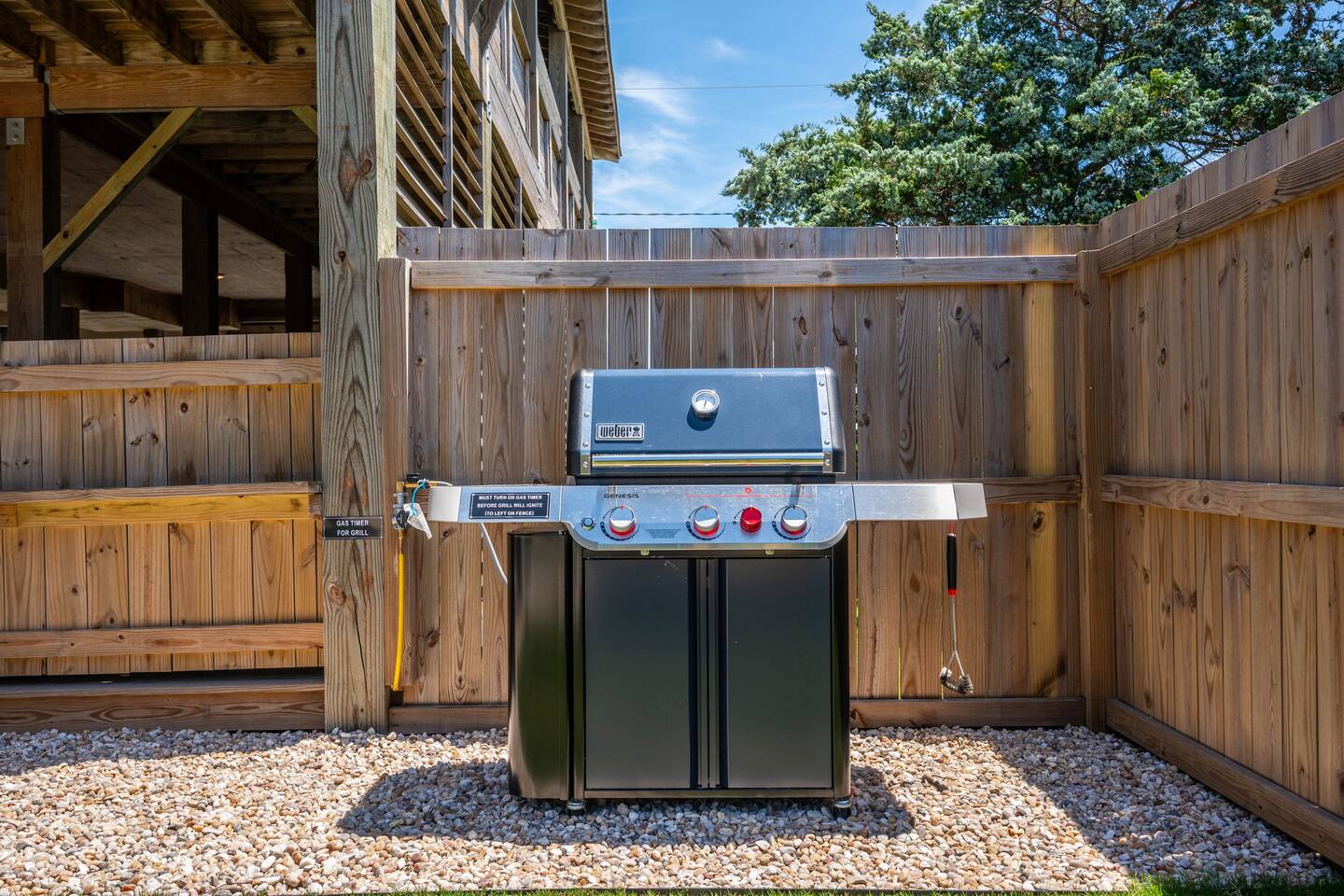Top floor has 3 bedrooms and 2 bathrooms. - 1 king bed with en suite primary bathroom w/shower - 1 king bed - 2 sets of double bunks (twin over twin) - main bathroom with tub/shower combo Mid level floor - Living room with 85 inch tv - Dining table can accommodate 8 guests comfortably - Additional seating outdoors and at kitchen island - 4th bedroom with king bed and en suite bathroom. Has private access off the kitchen back door that we call our "mother in-law" suite. Also has a mini fridge and microwave. - Washer and dryer Ground level - Heated pool (Pool heat is free - no additional charge) - Hot tub - Fully fenced backyard - Beach gear and beach cruiser bikes - Chairs and umbrellas - Wood burning fire pit (firewood provided) - Gas grill - Outdoor shower We supply: - Bed linens and bath towels - Beach towels - 8 beach chairs and umbrellas for you to use - Cooler - Beach cart that rolls on sand