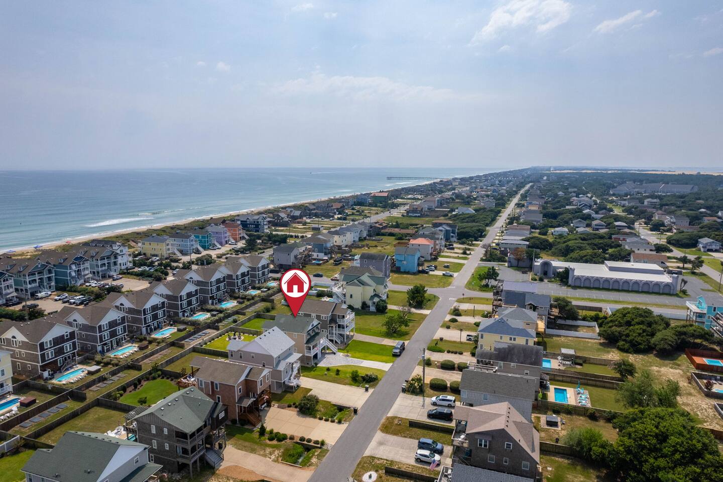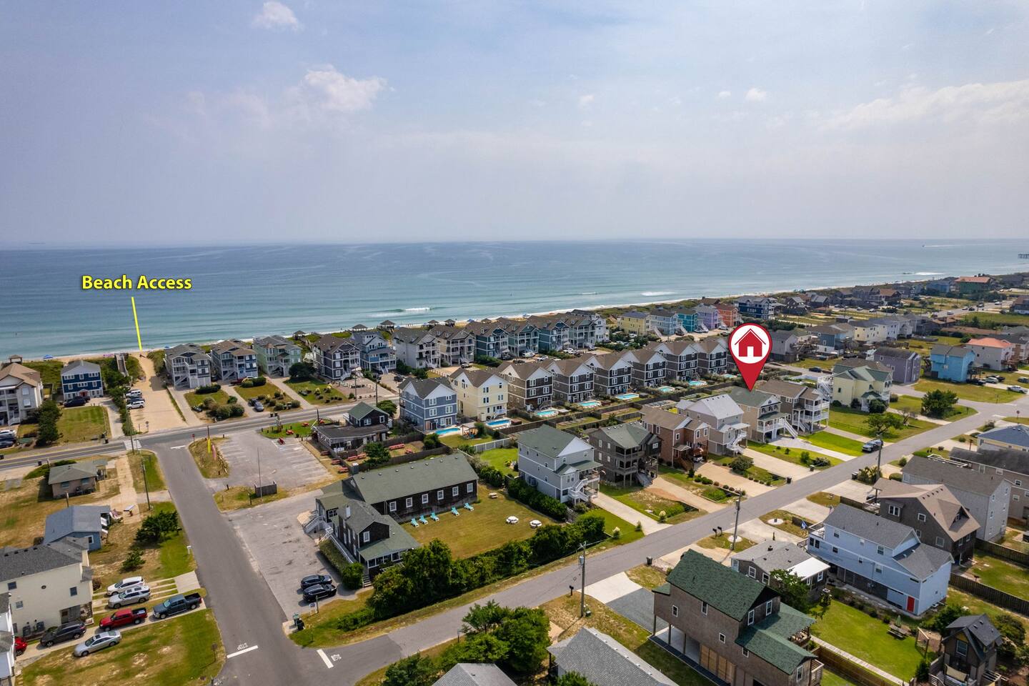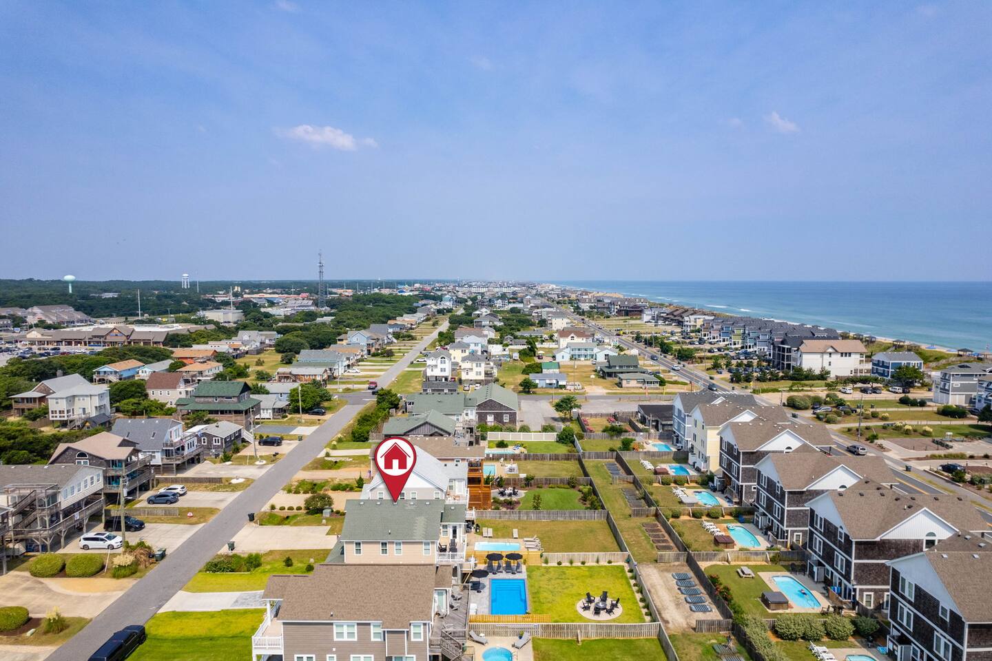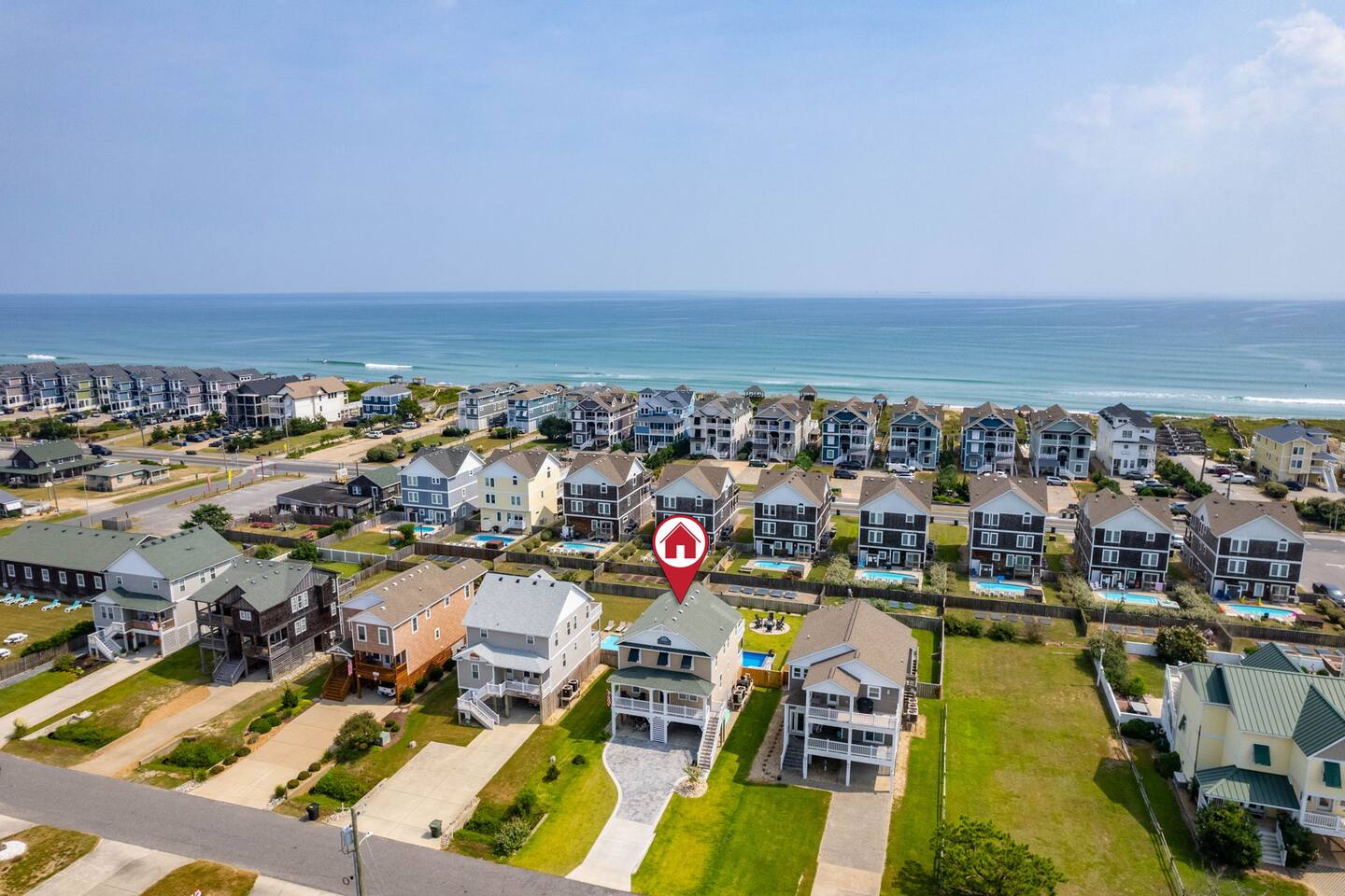 "Aprés Sea" is a 4 bedroom, 3.5 bath home great for up to 11 guests, with ample space inside and multiple outdoor spaces to relax. Bedroom configurations: - 1 king bed - 1 king bed - 1 king bed - 2 bunk sets (total 4 twin beds) - 1 twin xl bed in small nook bonus room (best suited for children). Other features include: - Heated saltwater pool (open April 1 - November 1). Pool heat is free - no additional charge. - Hot tub - Front and back decks with seating - Fully equipped kitchen - Full washer and dryer - Fast Wi-Fi - Smart TVs in every room, with live YouTubeTV - Fenced backyard - Fire pit with smokeless Solo Stove (firewood provided) - Oversized outdoor shower - Beach gear provided - Cruiser bikes - Steps to the beach - Near restaurants and shops - EV charger - 4 burner gas grill What's close by to walk to? - Two great beach accesses - Morning View Coffee & Front Porch Cafe - OBBC & Secret Spot surf shops - Dowdy Park - Outer Surf surf school - The Spot acai & ice cream - Seagreen Gallery - The French Door boutique - OBX Hot Yoga - YMCA & Outer Banks Sports Club gyms - Red Drum Tap & Grill