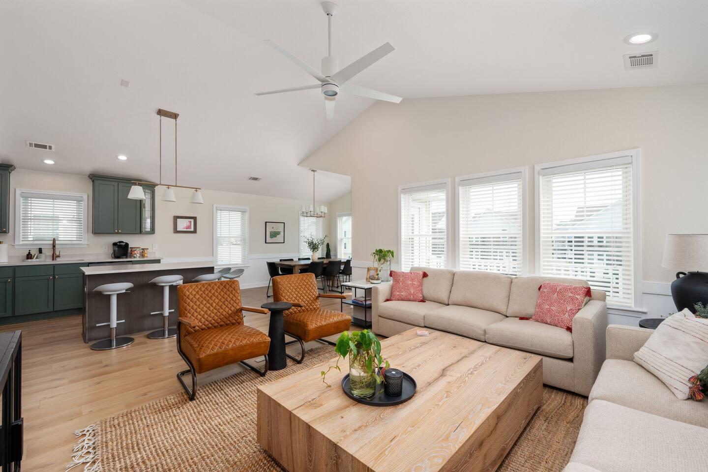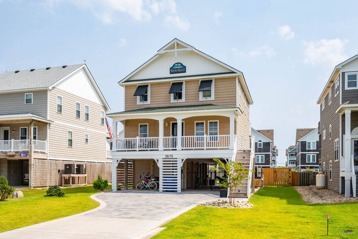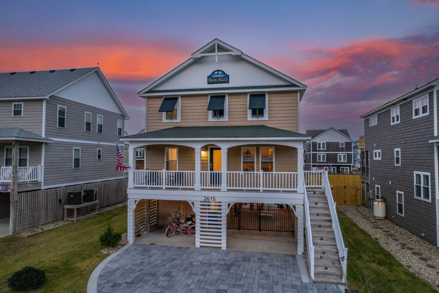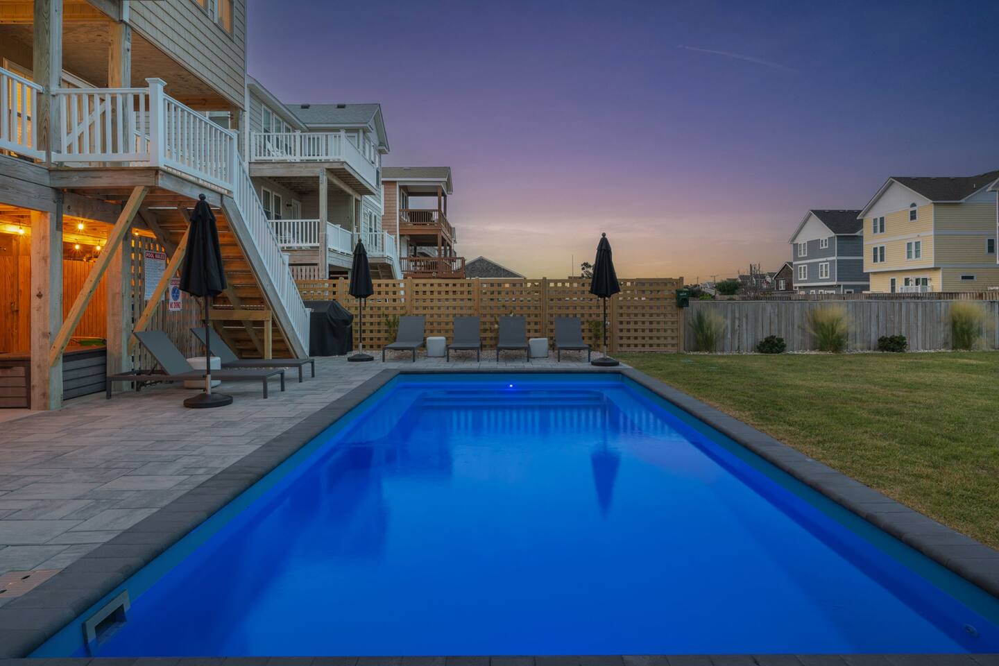 "Aprés Sea" is a 4 bedroom, 3.5 bath home great for up to 11 guests, with ample space inside and multiple outdoor spaces to relax. Bedroom configurations: - 1 king bed - 1 king bed - 1 king bed - 2 bunk sets (total 4 twin beds) - 1 twin xl bed in small nook bonus room (best suited for children). Other features include: - Heated saltwater pool (open April 1 - November 1). Pool heat is free - no additional charge. - Hot tub - Front and back decks with seating - Fully equipped kitchen - Full washer and dryer - Fast Wi-Fi - Smart TVs in every room, with live YouTubeTV - Fenced backyard - Fire pit with smokeless Solo Stove (firewood provided) - Oversized outdoor shower - Beach gear provided - Cruiser bikes - Steps to the beach - Near restaurants and shops - EV charger - 4 burner gas grill What's close by to walk to? - Two great beach accesses - Morning View Coffee & Front Porch Cafe - OBBC & Secret Spot surf shops - Dowdy Park - Outer Surf surf school - The Spot acai & ice cream - Seagreen Gallery - The French Door boutique - OBX Hot Yoga - YMCA & Outer Banks Sports Club gyms - Red Drum Tap & Grill