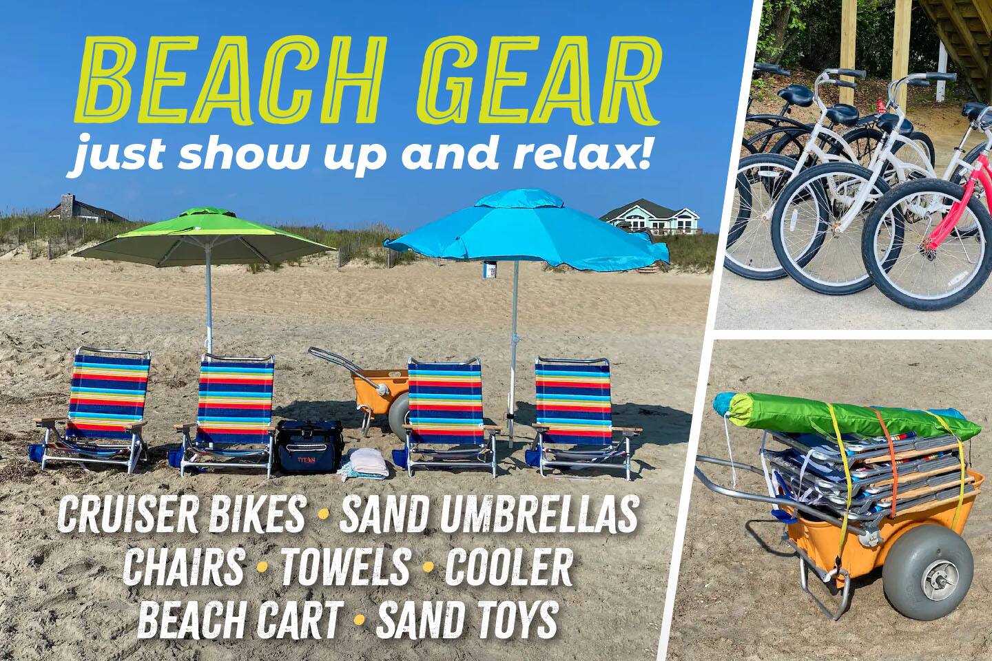 - Beach essentials Beach towels, umbrella, beach blanket, snorkeling gear