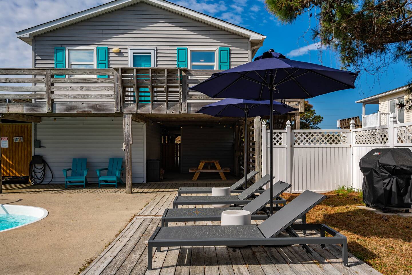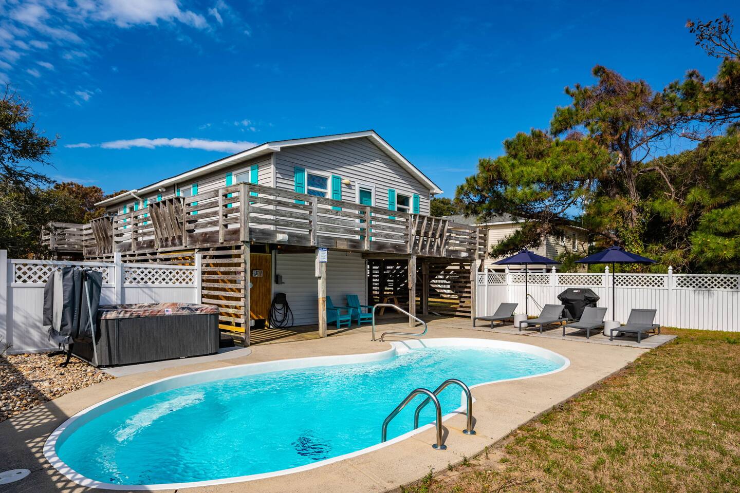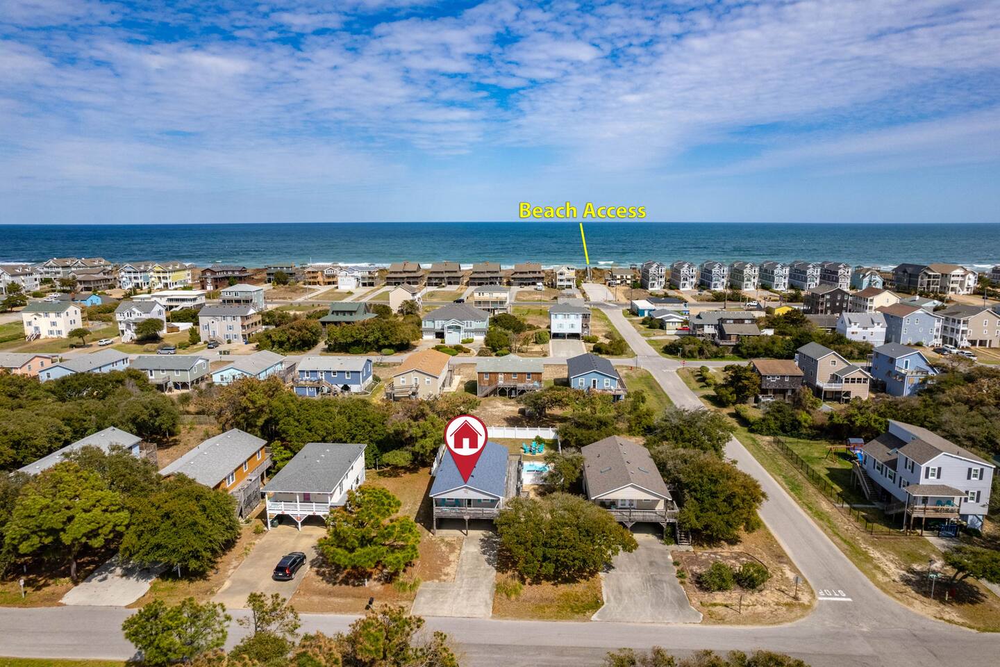 Bedroom configurations: - 1 king bed with en suite bathroom - 1 king bed - 2 bunk sets (total 4 twin beds) The "Pipe Dreams" house highlights include: - Heated saltwater pool (open April - November) - Hot tub - Wrap-around, covered deck with seating - Fully equipped kitchen - Full washer and dryer - Fast Wi-Fi - Smart TVs in every room, with live YouTubeTV - Fenced backyard - Fire pit with smokeless Solo Stove - Outdoor shower - Beach gear provided - 6 cruiser bikes - Short walk to the beach - Near restaurants and shops - EV charger - Gas grill What's within walking distance? - A great beach access - Front Porch Cafe - Seagreen Gallery - Booty Treats - Outer Surf surf lessons & rentals - OBBC & The Secret Spot surf shops - Dowdy Park - The Spot acai & ice cream - Outer Banks Sports Club gym - OBX Hot Yoga - Food Lion grocery store - Pizzazz pizza - Red Drum Tap & Grill
