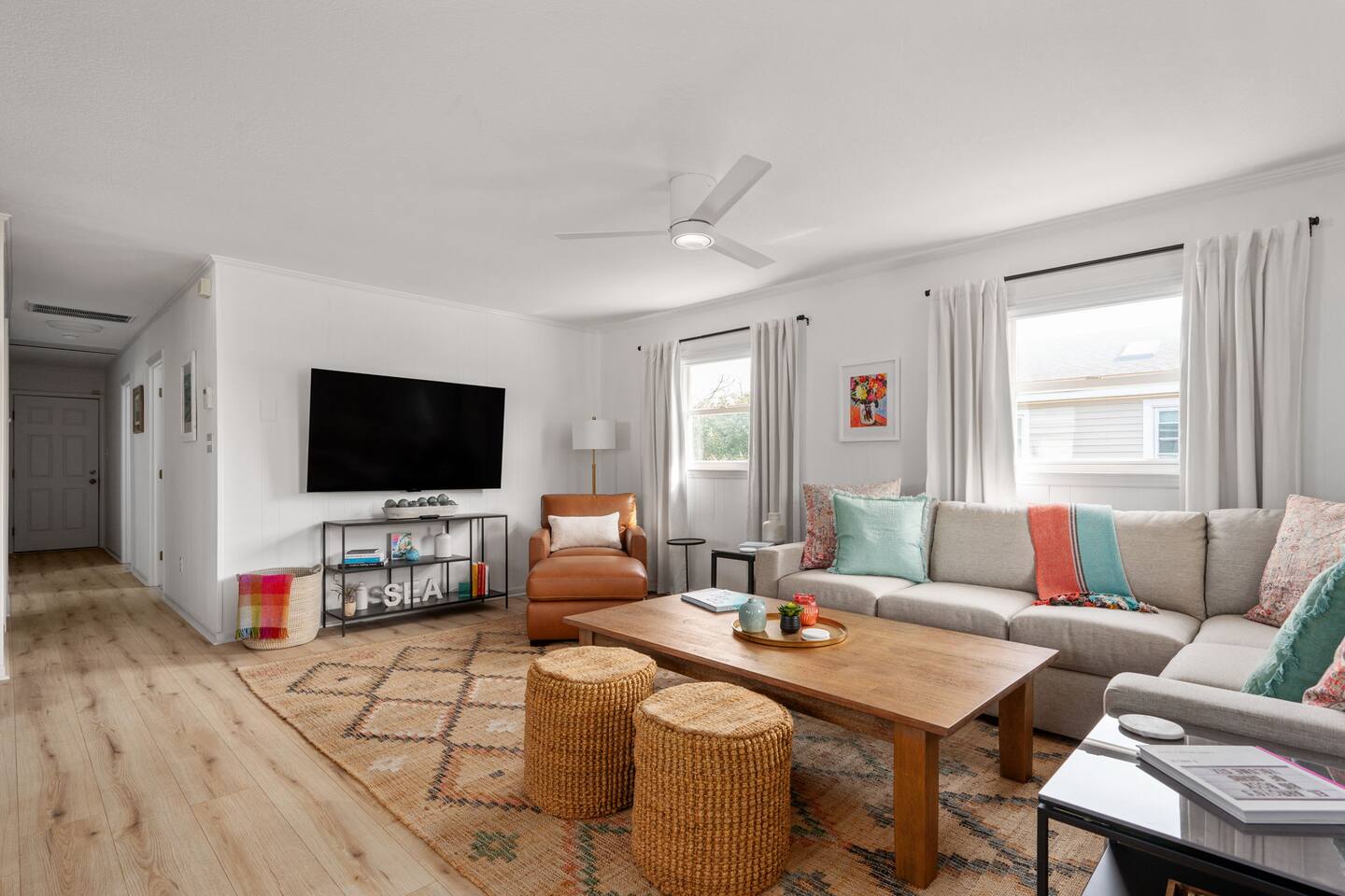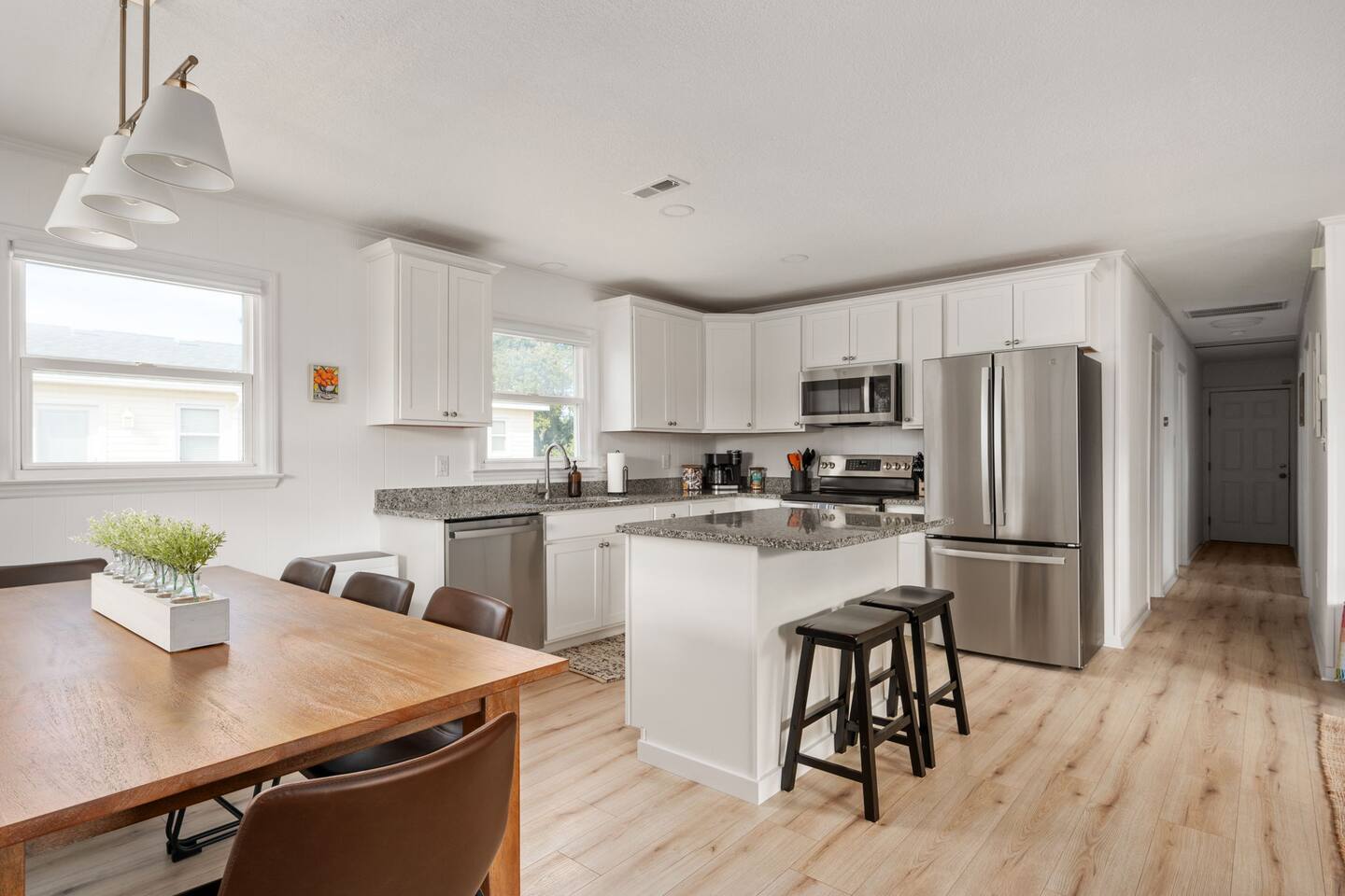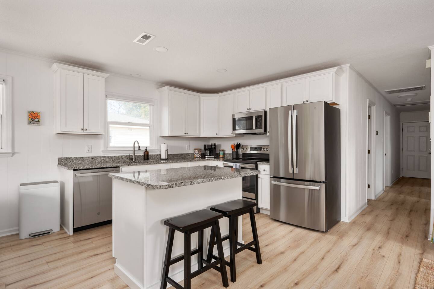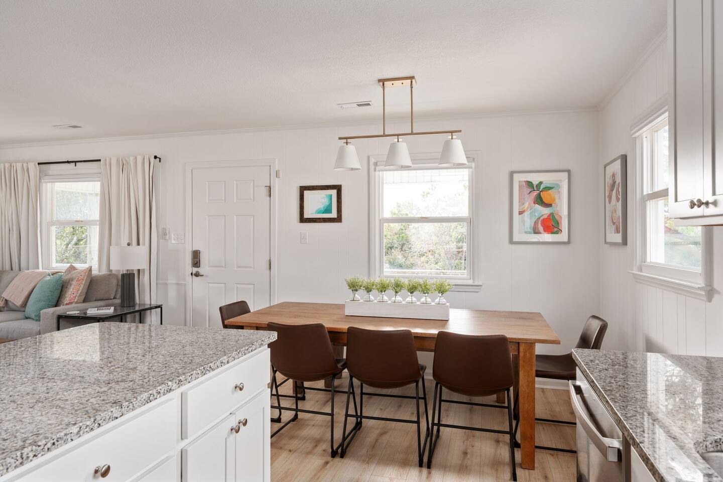 The house can accommodate up to 2 dogs with a non refundable pet fee. If you have a special request, please reach out to us. The door code is provided at the check-in time on the day of arrival. We provide linens (sheets and bath and beach towels). A booster seat and a pack ân play are also available. We provide a starter pack with the following: - toilet paper - paper towels - dishwasher tablets - laundry pods - Keurig coffee pods and tea - trash bags