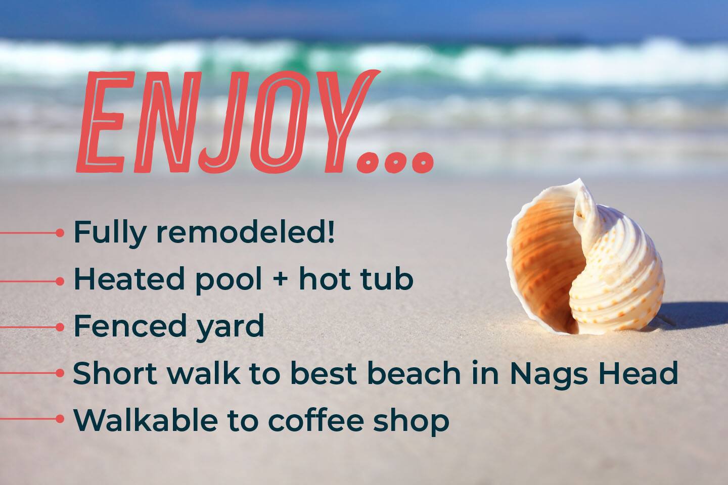 đ Enjoy fall in the Outer Banks! This remodeled 3BR Nags Head home is steps from shops, dining & the beach. Savor crisp air, uncrowded beaches & no waits at restaurants. Spotlessly clean and thoughtfully maintained getaway where you can relax with coffee on the deck or soak in your private hot tub. The heated pool stays open through November, and evenings are perfect for stargazing by the fire pit. A fenced yard adds privacy while you unwind at the coast. Fall sunsets here are unforgettable.